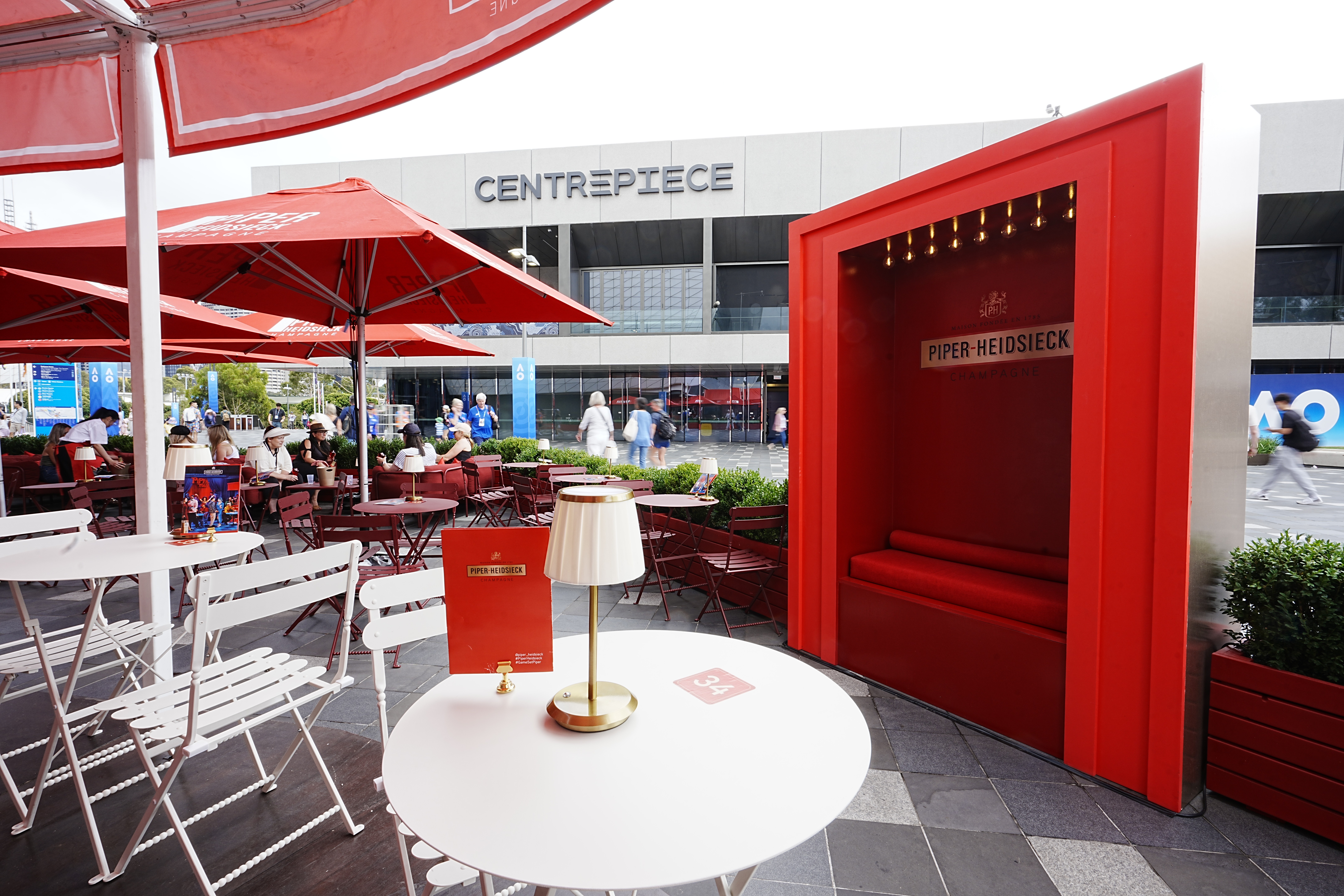 For the second year running, SUBVRT brought Piper-Heidsieck's cabaret world to life at the Australian Open — two spaces balancing luxury sophistication with the brand's signature wit and joy.